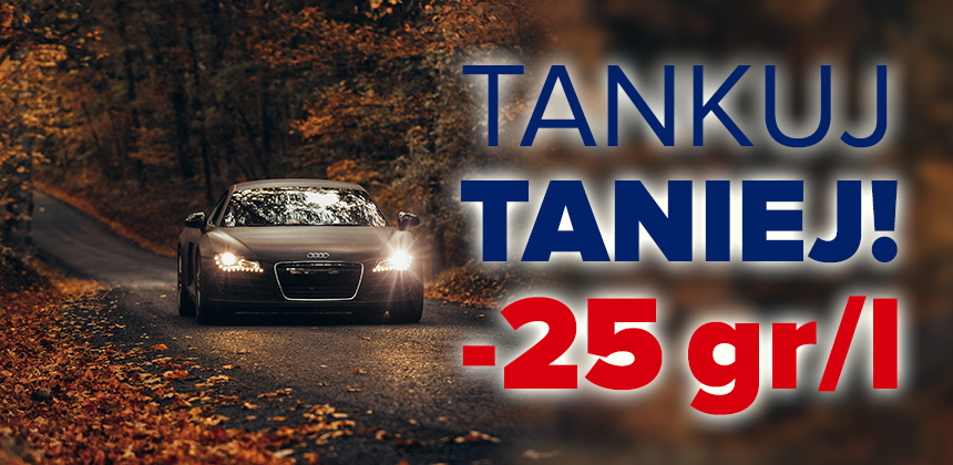Już w najbliższy czwartek zatankujesz o 25 gr/l TANIEJ. Kod rabatowy 1710 uprawniający do zniżki, ważny będzie na samoobsługowych stacjach MOYA express w dniu 17 października 2024 r.