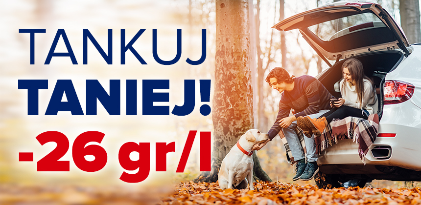 Już w najbliższą sobotę i niedzielę zatankujesz o 26 gr/l TANIEJ. Kod rabatowy 2627 uprawniający do zniżki, ważny będzie na samoobsługowych stacjach MOYA express w dniach 26-27 października 2024 r.