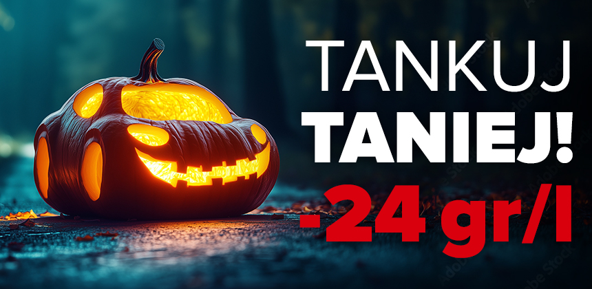 Już w najbliższy czwartek zatankujesz o 24 gr/l TANIEJ. Kod rabatowy 3110 uprawniający do zniżki, ważny będzie na samoobsługowych stacjach MOYA express w dniu 31 października 2024 r.